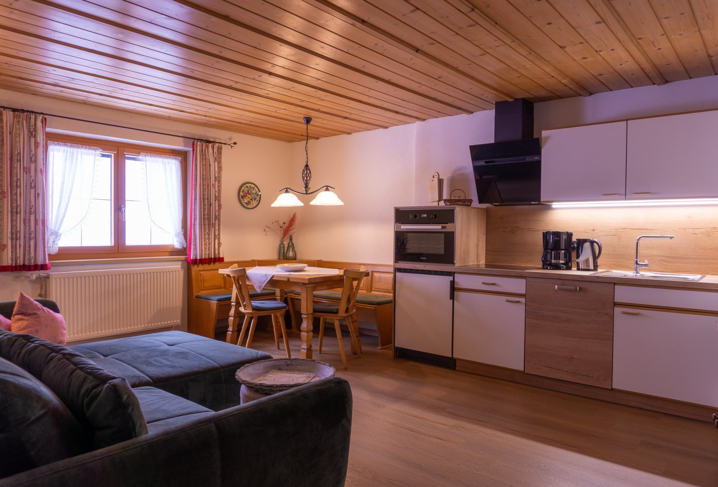 Die Ferienwohnungen und Zimmer sind mit viel Holz im heimischen Stil eingerichtet und komplett ausgestattet.